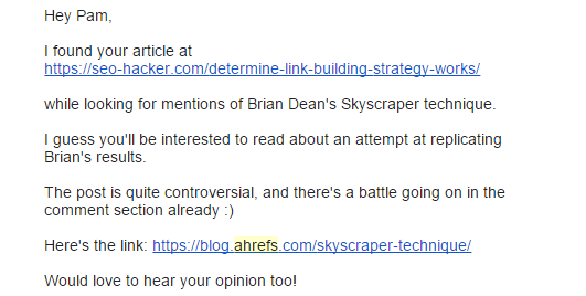 Here’s a good example of an outreach: