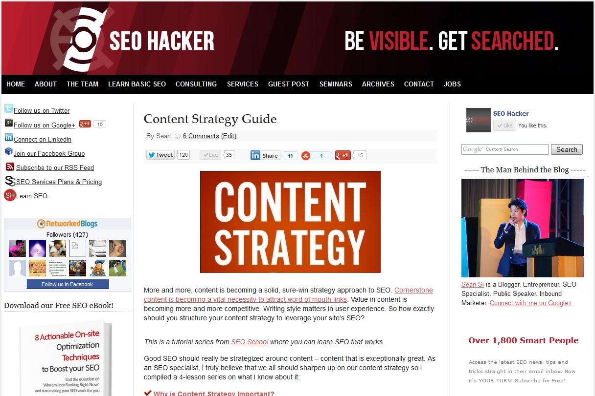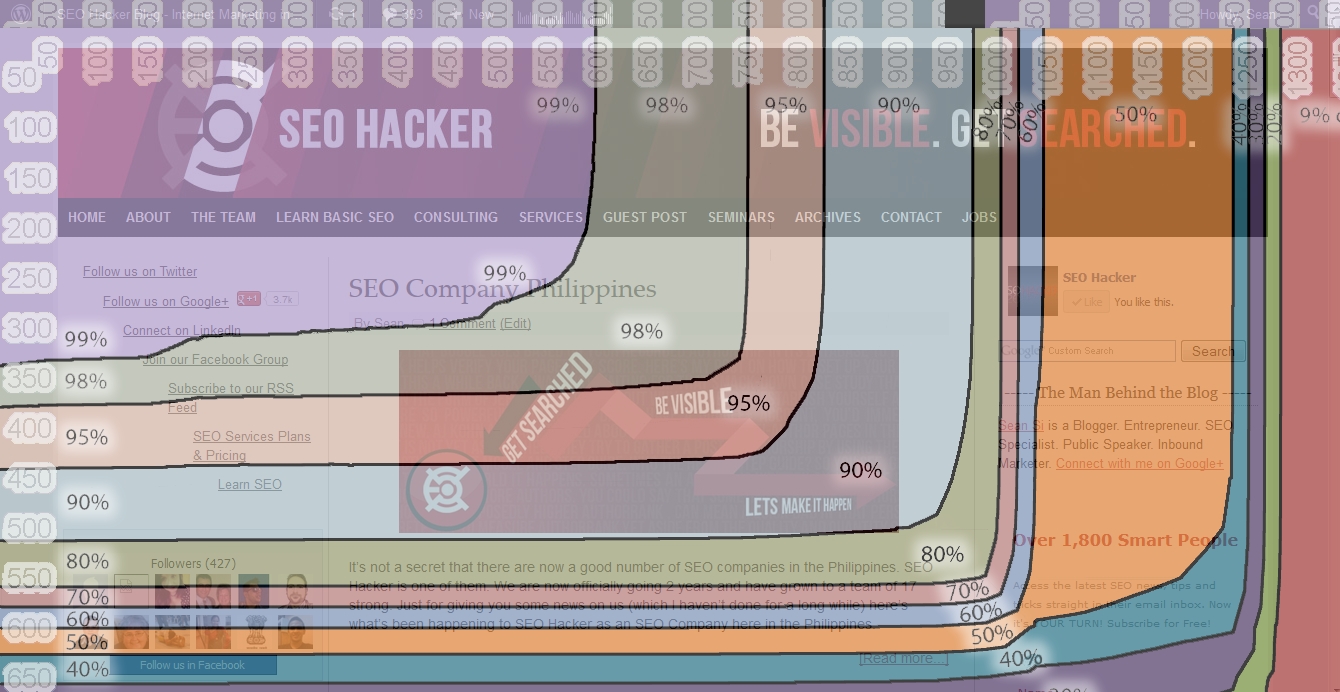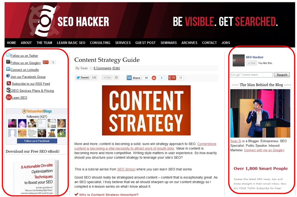 I put a lot of time thinking about the things that I should put on SEO Hacker’s sidebars. Everything that I put there that are above the fold are either meant to make our readers part of our social network community, increase our branding in them, connect us in Google+ or help them learn SEO in our SEO School.