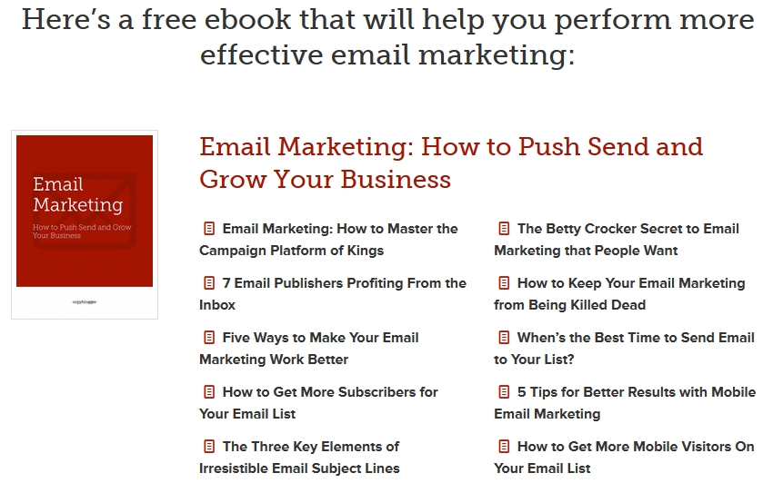 Here’s a great example of action-focused content from Copyblogger (from their Email Marketing ebook page):