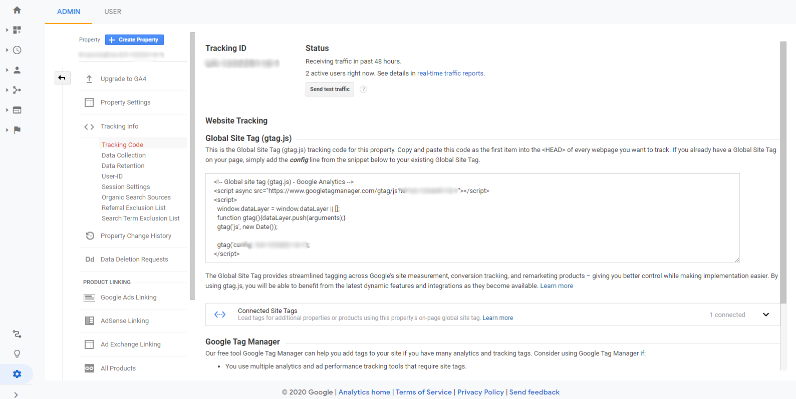 I’m using Google Tag Manager to implement my tags so I’m only using the UA ID of my property, not the gtag.js.