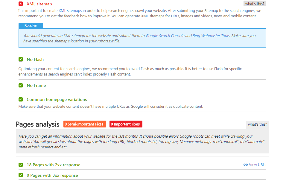 The next thing you’ll want to check is XML sitemaps. An XML sitemap is a way for site owners to let search engines know about all pages that exist on their website. That said, it’s incredibly important to format your XML sitemap and submit it to webmaster tools account; this will ensure better accessibility.