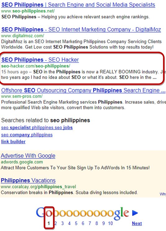 - I was experimenting on how high I can rank for the term SEO Philippines