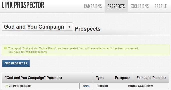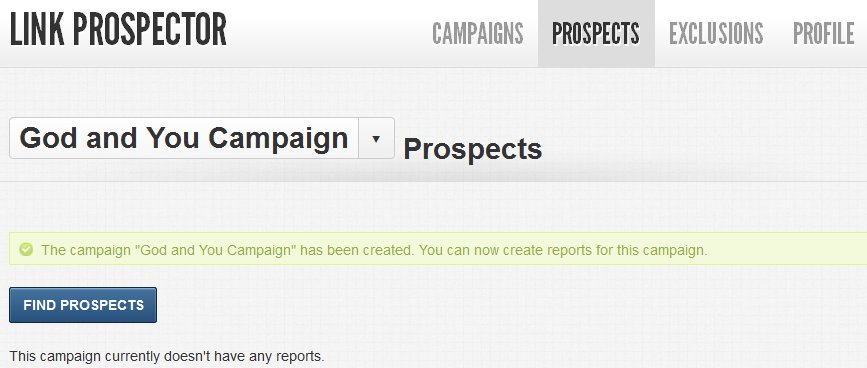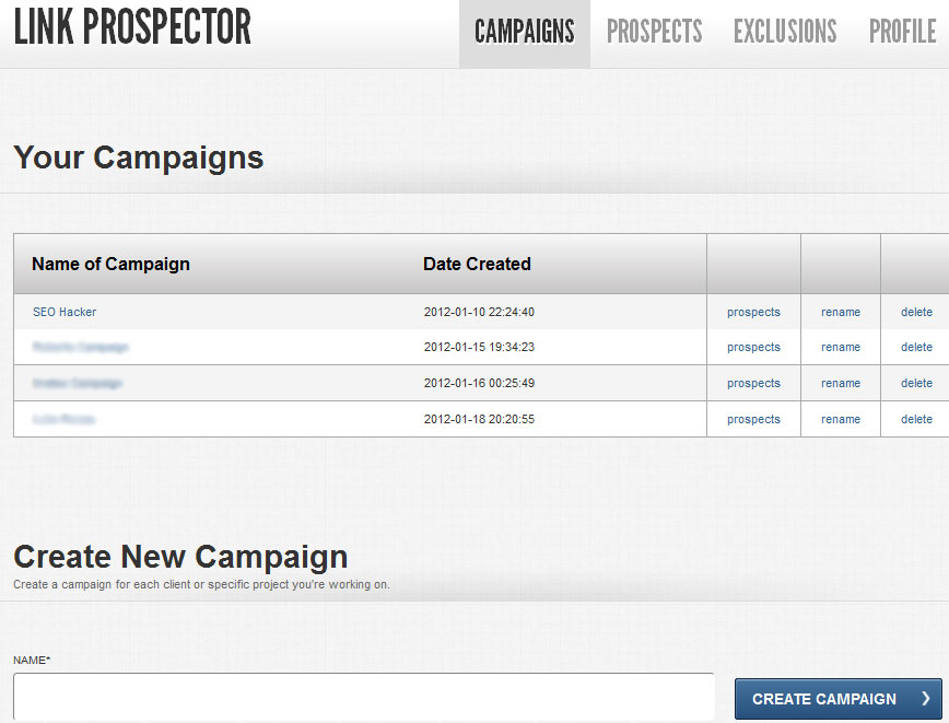 The dashboard lets you check out your previous prospects, rename or delete them. It also lets you create a new campaign. Using Link Prospector is very simple and easy to use. You don’t have a whole lot of options to confuse you. You only have to start by creating a new campaign.