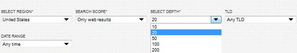 You can also narrow your results down further by filtering the depth of the results to the first 20 results – giving you the top 20 most relevant results from the tool.