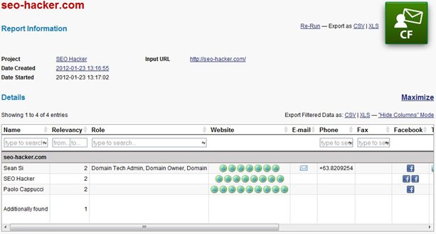 In just few minutes, you’ll be able to see fresh contact information about the man behind the website you chose. You’ll be able to see if he has an account on Facebook, twitter, Google+ and linked in. This feature will help you build a relationship to the webmaster which will greatly grease your pitch to a quality backlink for your website.