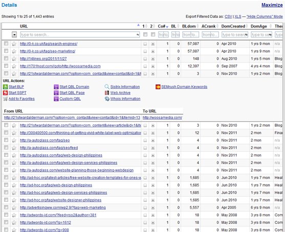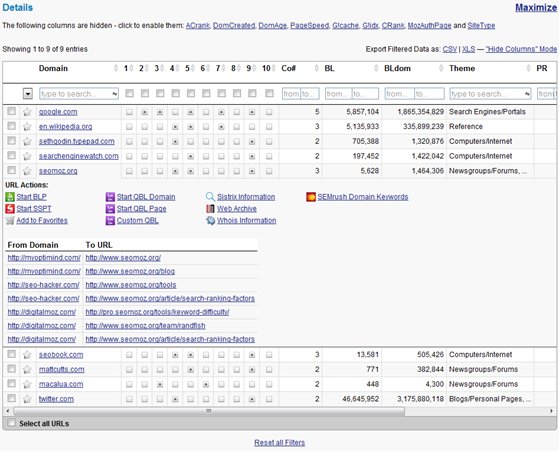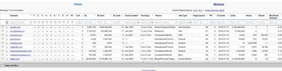 Here you can see all the details pertaining to the websites that you can get links from including all the metrics that you have pre-selected before generating the report. As you can see, there are a lot of details that are shown at the same time. You have the option of editing several filters to make this report suit your needs