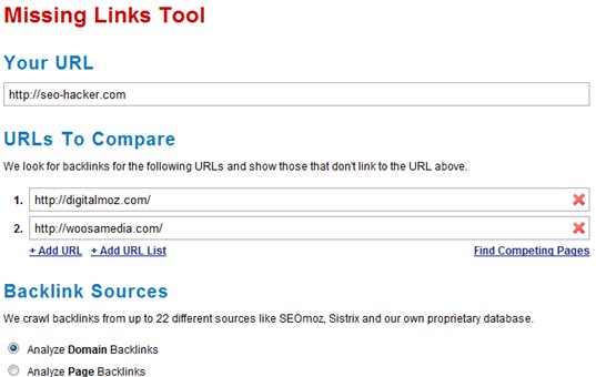 The Missing Links Tool has a very simple function – it compares your website’s backlinks and your competitors’ and shows all the links they have but you don’t. By adding those “missing links” to your own website,