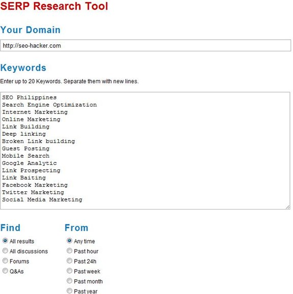 The SERP Research Tool allows you to find link prospects where you can get quality and juicy back links for your website.