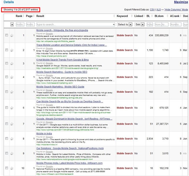 This report is similar to all the others except for one metric; the Juice metric. As you can see, digitalmoz.com has a “Juice/25” result. This means that the domain and/or pages within has/have been found to be juicy. It ranks no. 1 for a unique phrase. The value of 25 signifies the numerical rating of “juicyness.” The higher the value, the better. 25 is the highest value possible.
