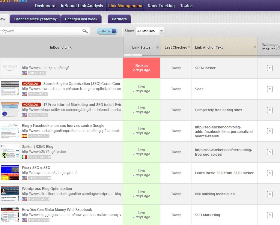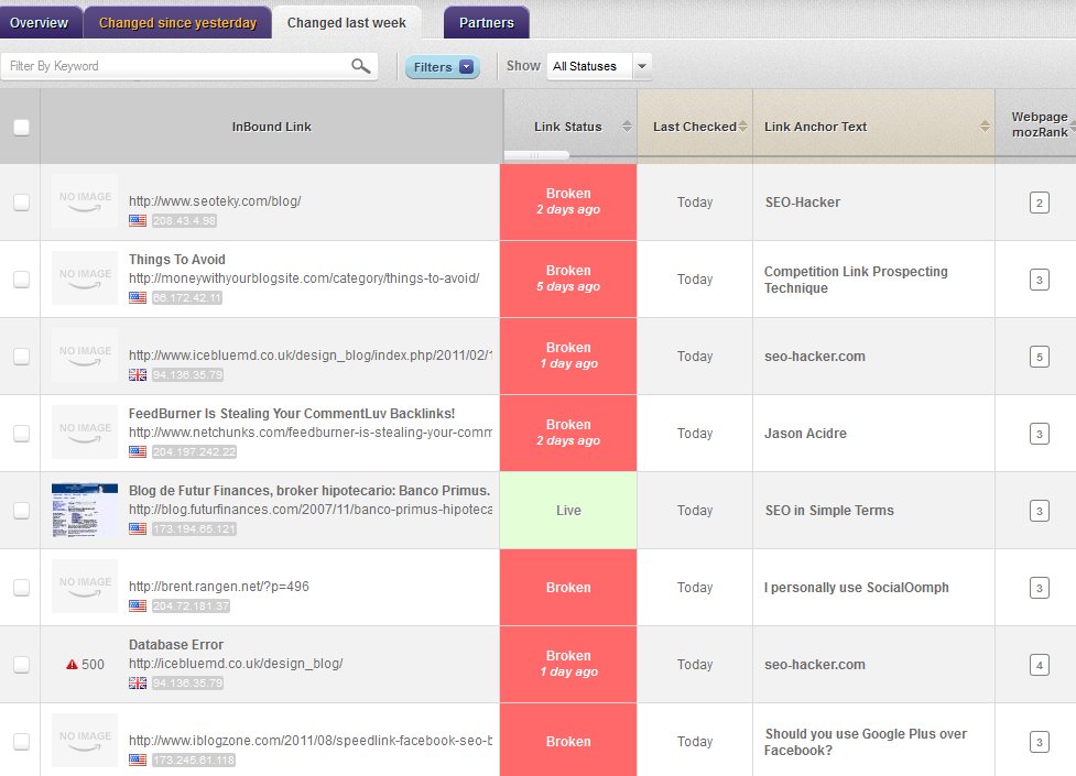 The link management tool also lets you view only the links that had changes since yesterday or since last week (as show below).