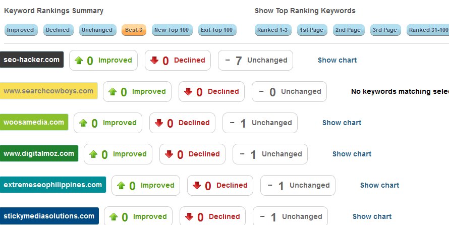 The keywords can be compared to your competitors in the aspect of whether it has improved, declined or if it remains unchanged.
