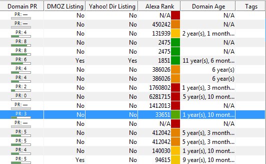 After all those things, it still pulls up some more data! It shows you the domain PR, DMOZ listing, Yahoo Directory listing, Alexa Rank and Domain age of the backlink. I didn’t let SEO Spyglass pull the tags anymore as I didn’t want to wait longer coz of it – so I have yet to check that out.