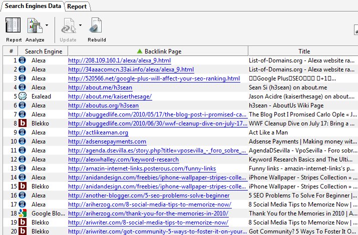 I’ve mentioned all the great Yahoo Site Explorer Alternatives on the previous post – and some of the alternatives I’ve mentioned are Blekko and Exalead. These two are search engines. They both also provide data about backlinks. SEO Spyglass uses the both of ‘em to source backlink data from and more.