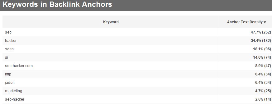 As well as the number of times that a keyword is found in your anchor text.
