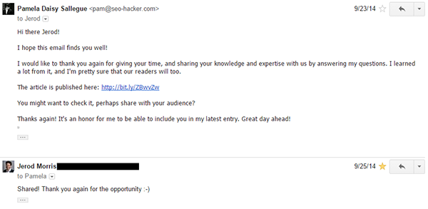 There are many ways for you to do this, but what I usually do is to e-mail them that the article is live – just like this: