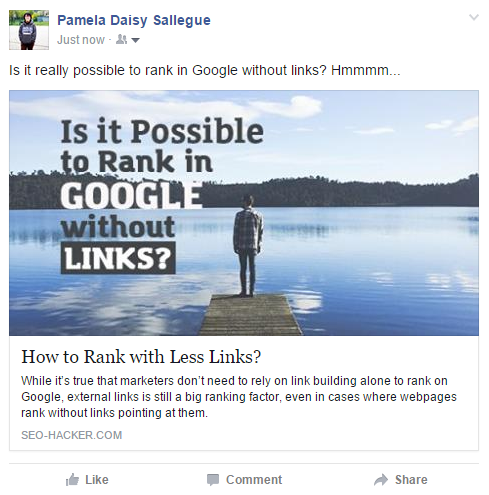 By default, social networks will automatically pull data from your webpage’s meta values whenever you share it in different social media accounts. The post will be something like this: