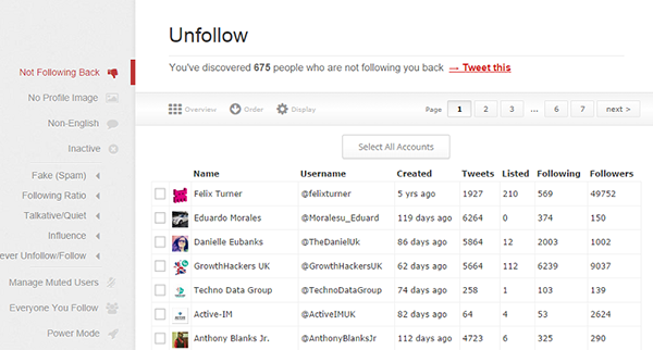 To speed things up, I personally use ManageFlitter, because it’s a platform that’s easy to use and understand.