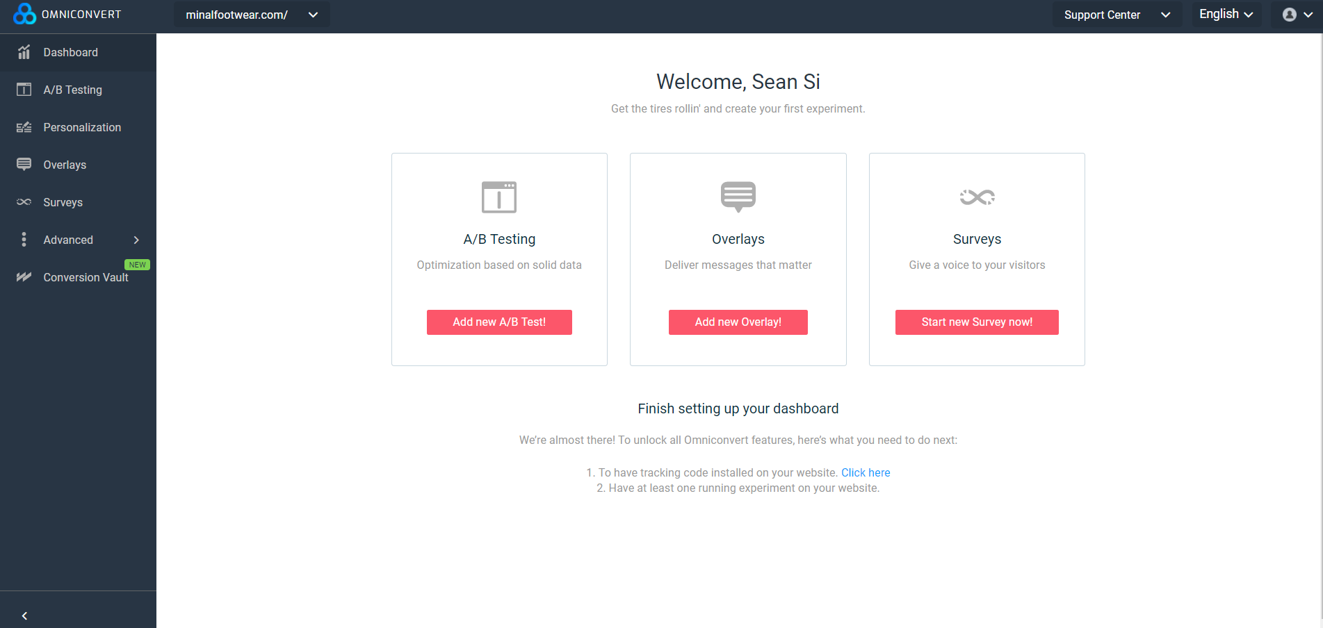 Upon logging in, you would instantly be able to view the dashboard, where you can access all of the features Omniconvert has to offer. You can instantly start using these features upon adding your website, which can be accessed on the top-left corner next to the logo.