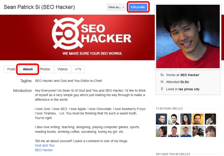 3) Link to your About page from your Google+ Profile. To do this, go to your Google Plus About Page and then click on ‘Edit Profile’.