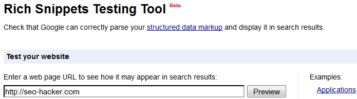 Now that everything’s done, check if the code can be successfully read by Google. In order to do this, go to Google’s Rich Snippets Testing tool. Put in your URL in the text area and click on ‘Preview’