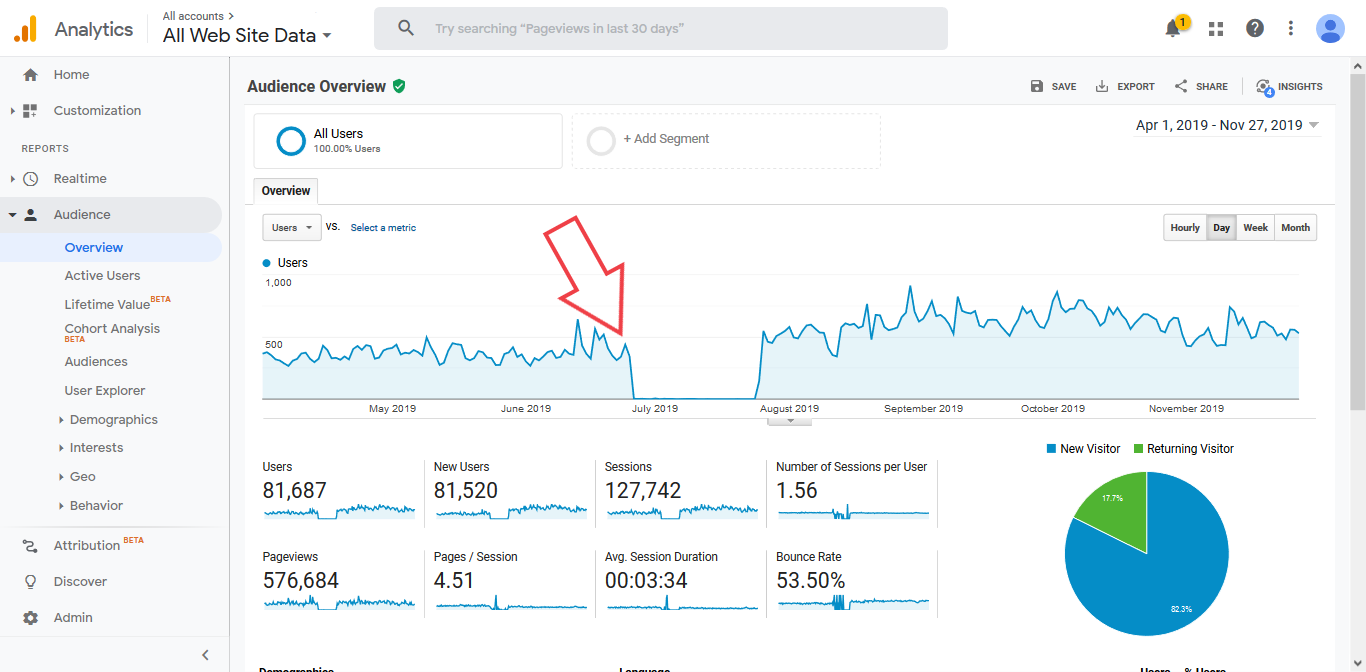 For almost a month, visitors to our client’s website flatlined and it took days of investigation from my team to find out that the site still had its noindex meta tag from the dev site.