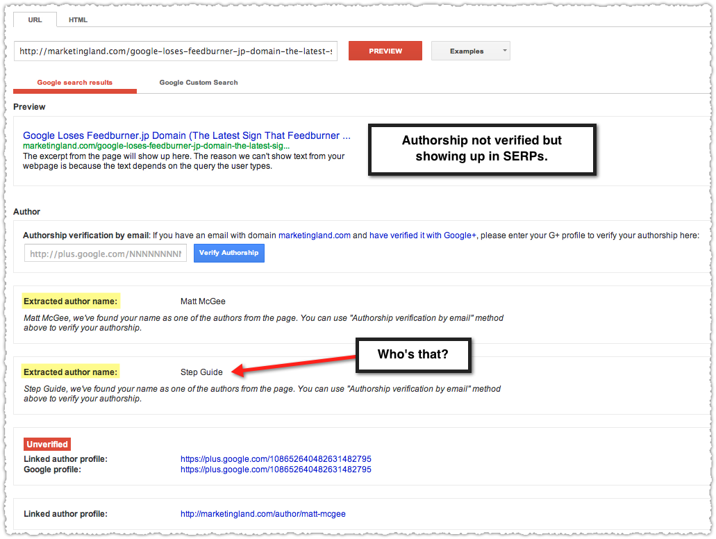 If you noticed, there’s 2 extracted author names in the picture: Matt McGee and Step Guide. Who the heck is Step Guide?