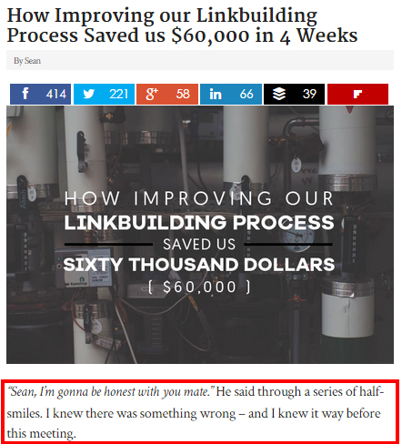 Note: Numbers as figures work better than numbers as words. Yes, that’s right! So the title “How Improving our Linkbuilding Process Saved us $60,000 in 4 weeks” is better than “How Improving our Linkbuilding Process Saved us Sixty Thousand U.S Dollars in Four Weeks.”