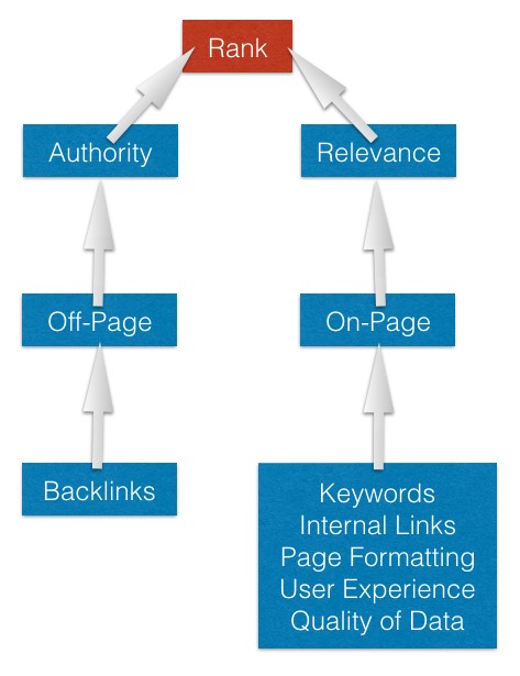 The other factor is relevance. Relevance is about on-page SEO. How is relevance assessed? There are several ways to evaluate how relevant a page can be. The main ones would be: keywords, internal linking, page formatting, user experience, and quality of data.