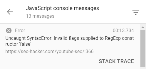 Lastly, the final section is JavaScript Console Messages, which shows you a list of messages that can be stacked traced to look for any issues.