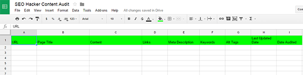 To get started, go to Google Drive, and create a spreadsheet or you may also use MS Excel Sheet. This spreadsheet will be used to list down all aspects of your content that should be reviewed.