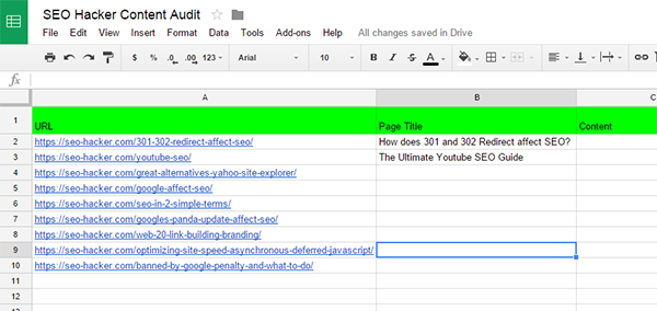 You will need to list down all the pages on your site starting from the most-visited pages. It’s better to audit the most important pages first, so that majority of your energy and time will be dedicated to these pages. But don’t get me wrong, you also need to give proper attention to other pages of your site.