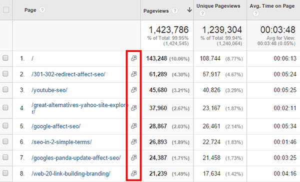 The next thing you need to do is to go to your Google Analytics, and list down all the pages on your site.