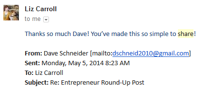 - Make it easy to share with a click to tweet (at a minimum if the person is busy, they can do that).