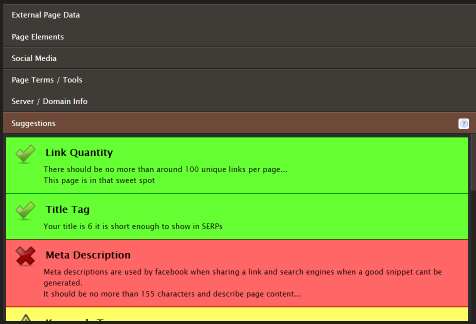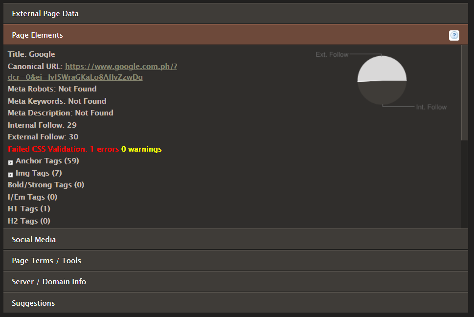 The amount of features available in this tool already provides you with a lot of information that you can use to apply for SEO in your site. The External Page Data provides you with the amount of links and indexed pages, along with crucial rankings. Page Elements, meanwhile, show you the amount of links within the site, along with the number of tags and headers.
