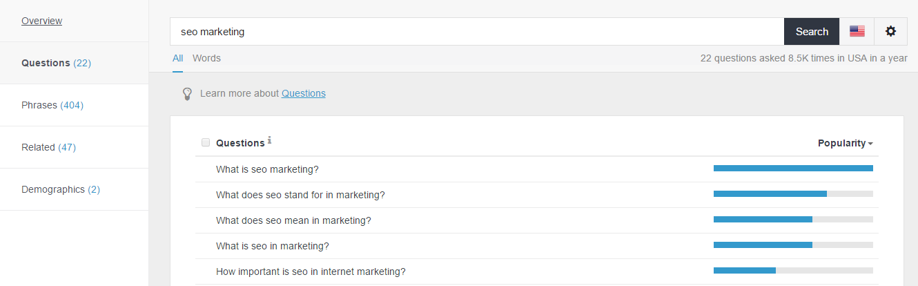 In this case, direct questions on “What is SEO Marketing and its importance“ provides value for a lot of readers. Additionally, questions on how to make money on SEO Marketing seem to raise a few eyebrows for a number of people. Creating content that answers these type of questions will surely increase the chances of readership and shareability.
