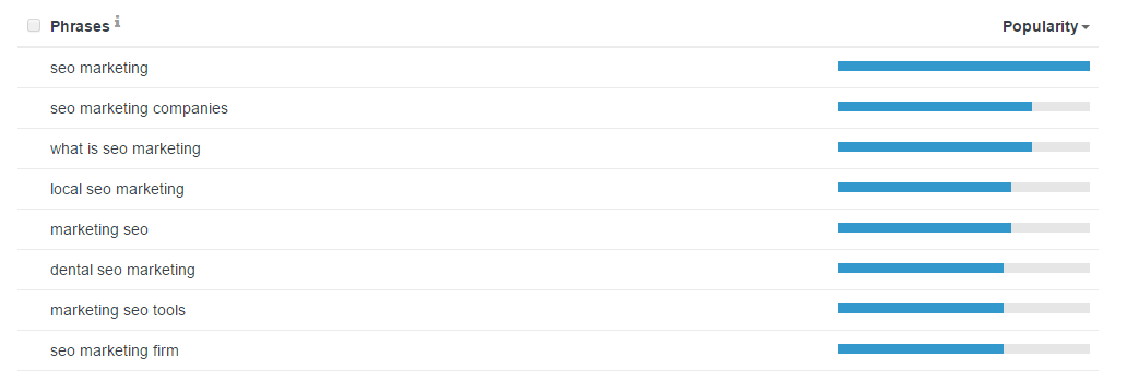 Looking at the results, it seems that aside from our keyword itself, a good number of people are actually looking for “SEO Marketing Companies” – and now that we know, we can start creating content for the sole purpose of answering the need for the search term “SEO Marketing Companies”. Nifty, right?