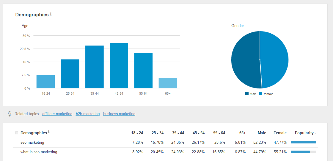 Finally, here is the feature that introduces you to your target audience. Demographics allows you to get to know the basic characteristics of your audience from their age and gender. This is perfect especially when you’re having some problems with your Buyer’s Persona which is a common debacle content creators all over the world.