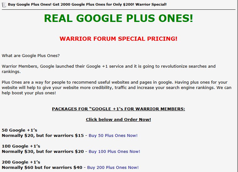 Why not sell a Google +1 service when it works? And that’s just what’s happening right now as many people try to abuse the ability of the +1 button to increase search engine rankings.