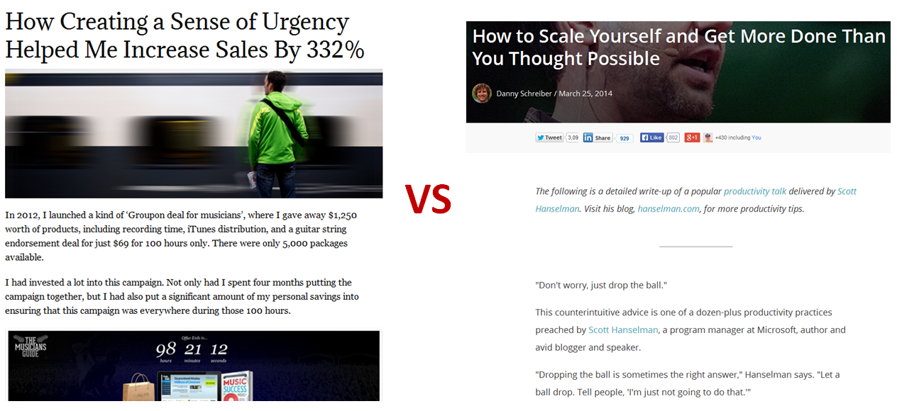 “How Creating a Sense of Urgency Helped Me Increase Sales By 332%” vs “How to Scale Yourself and Get More Done Than You Thought Possible”