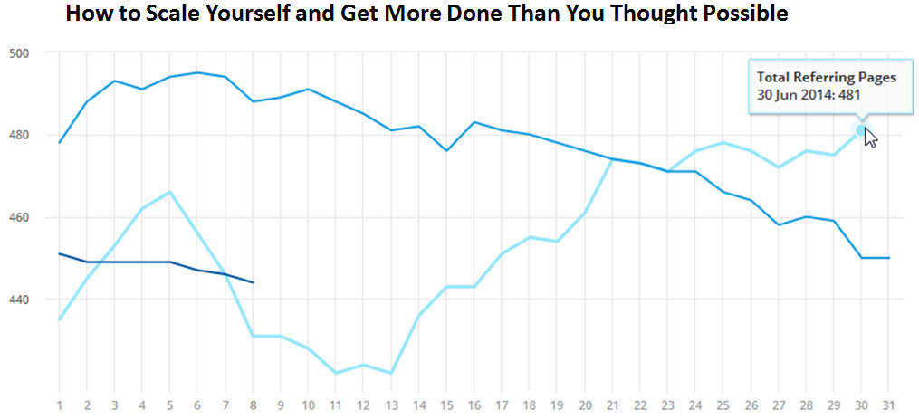 While the comparison entry – Zapier’s how to scale yourself post – got only 481 links, did not plateau and then maintained a slow decline.