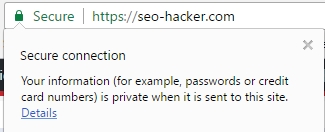 HTTPS websites, on the other hand, is marked by Chrome as “secure”. When you click on the word “secure”, Chrome will inform you that the website that you are on is safe and that your personal information is kept as private when you send it over to that website.
