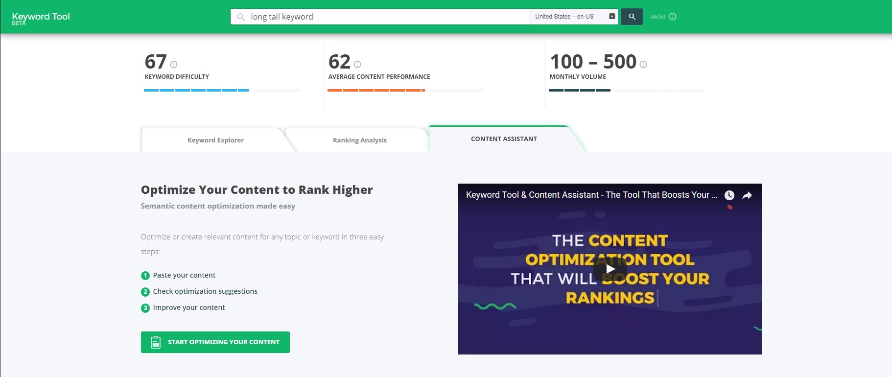 Let’s dig deeper on their keyword tool & content assistant and find out what it has to offer.