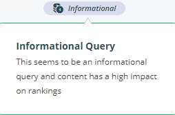 The first thing any user will see is the Organic results for “….” then the type of search query it is. In my case, it as an informational query and if you point your cursor to this small part of the page, it will show you a short description of the query. Here’s what it looks like: