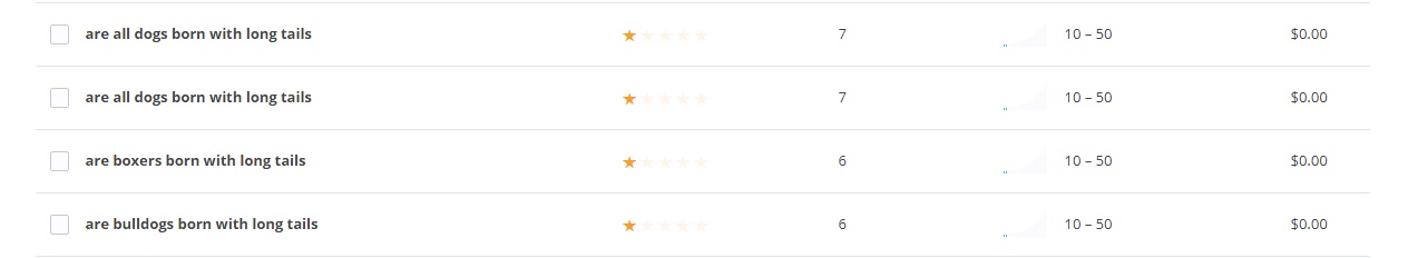 Additionally, there are also included keywords in the results that are totally unrelated to the topic I searched for. Although it has the terms “long tail”, it is still unrelated to the overall topic that I searched for. Here are some of them: