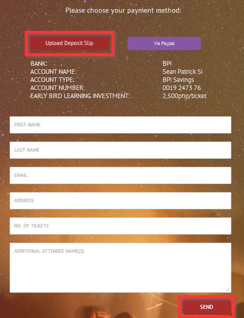 2) If you are paying via bank deposit, make sure to scan the deposit slip, fill up the form and press send