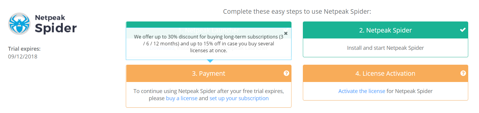 To begin using Netpeak Spider, all you have to do is to register your email or Facebook account to create your own Netpeak account. Once you have your account, you would have access to your own dashboard, where you can download Netpeak Spider on your desktop.