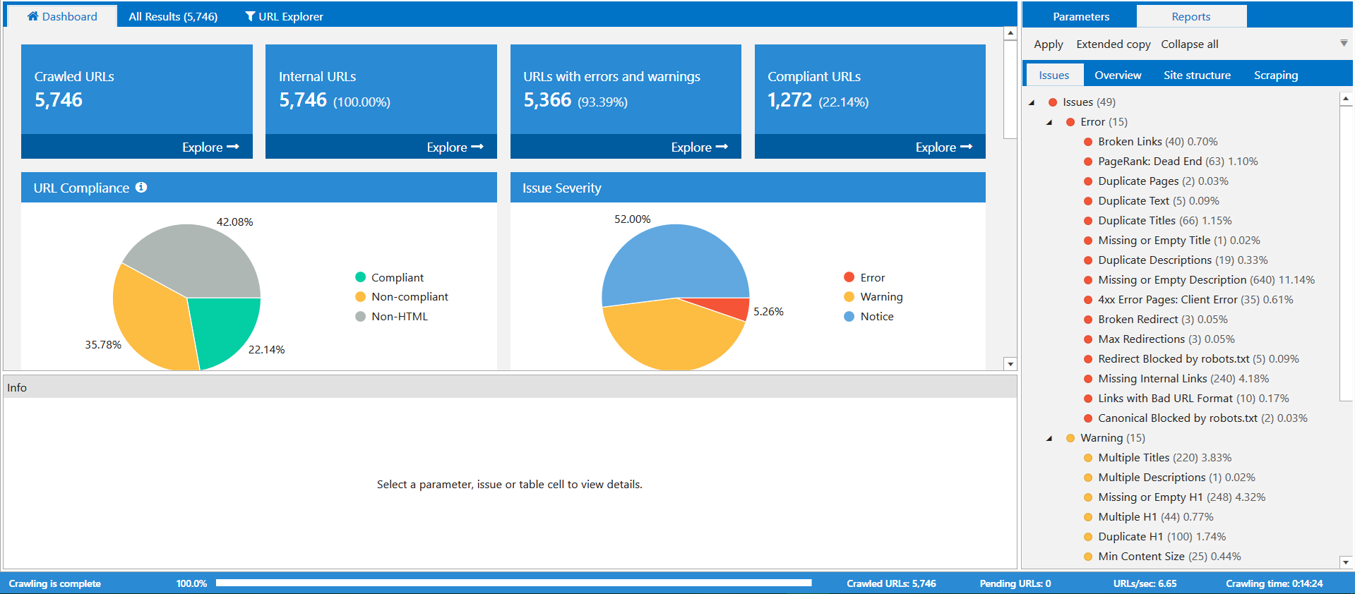 After Netpeak Spider is done crawling, you would be able to view your data. The amount of data that you will be able to view and analyze is as vast as the number of web pages your website has, which means that you get to see so many details that are worth taking a look.