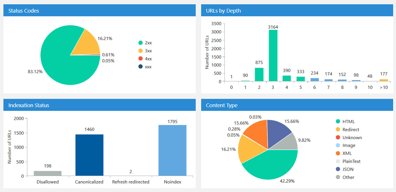 Having this feature makes this tool more streamlined than other web crawling tools, as you can instantly go to the links that have issues that need to be resolved, along with links that are performing well. This feature might be simple at a glance, but this helps make it into a more efficient crawling tool that any member of your team would be able to use.