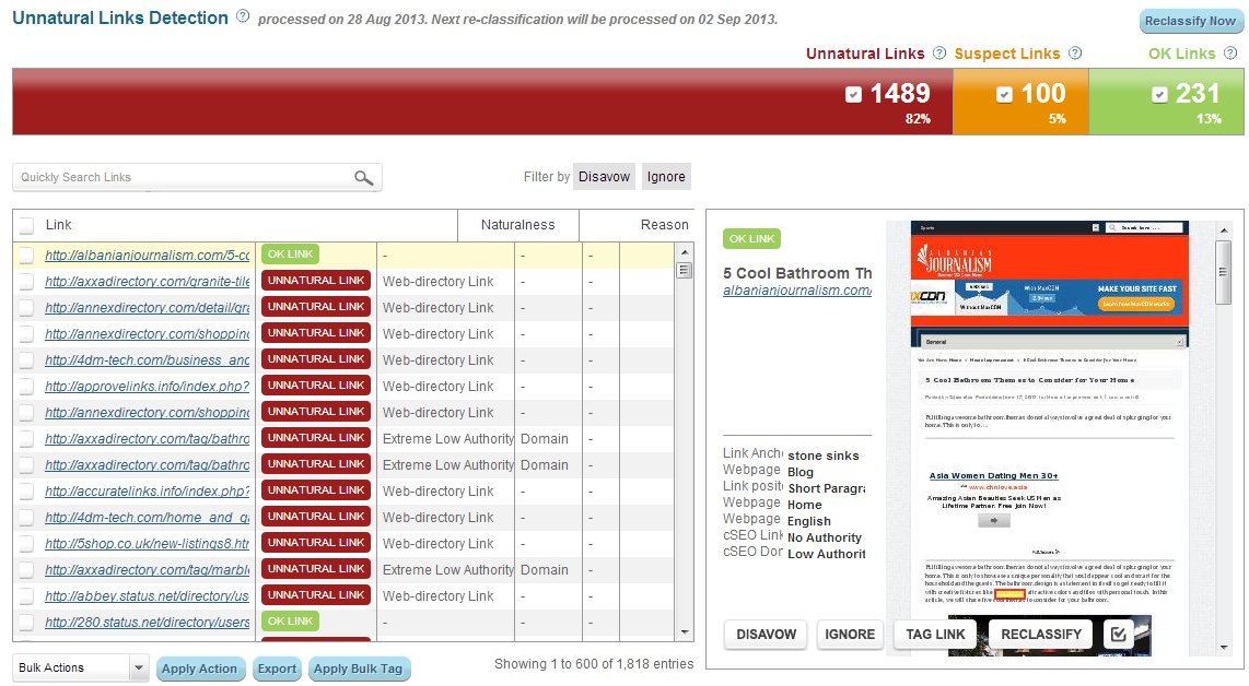 I would say that there is a need for improvement in the analysis’ accuracy department. The tool still isn’t as accurate as I expect it to be. In one of my campaigns, there were inbound links from a blog that I made which were considered to be unnatural. The reasons stated were thin content and extreme site-wide link. I can definitely vouch that my blog has no thin content and that majority of the links are not site-wide but are in-content.