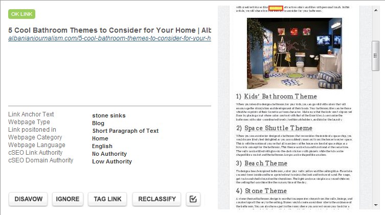 Suspect Links – These are links that have been marked as potentially unnatural.